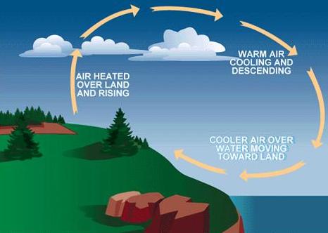 | Figure 5-9.—Convection currents form on-shore winds in the daytime. |