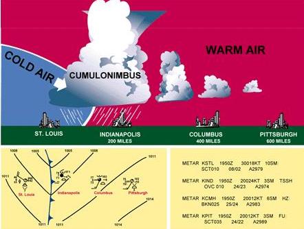 advance of the actual cold front. Whereas warm front dangers are low ceilings