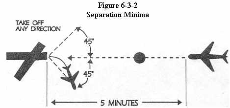 takes off before the arriving aircraft leaves a fix inbound not less than