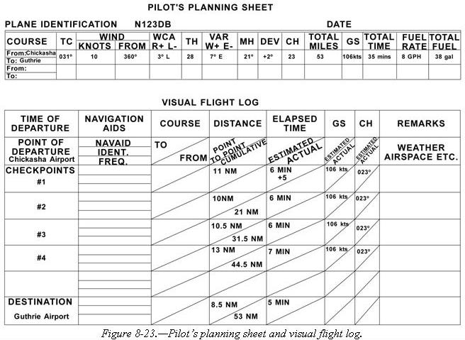 As the trip progresses, the pilot can note headings and time and