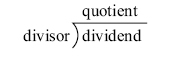 CHAPTER 1. Mathematics Division of Whole Numbers Division is the process of finding how many times one number (called the divisor) is contained in another number (called the dividend). The result is the quotient, and any amount left over is called the remainder.