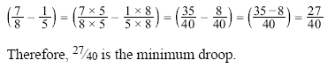 If the fractions do not have the same denominator, then one or all of the denominators must be changed so that every fraction has a common denominator. Example: The tolerance for rigging the aileron droop of an airplane is 7/8 inch ± 1/5 inch. What is the minimum droop to which the aileron can be rigged? To subtract these fractions, first change both to common denominators. The common denominator in this example is 40. Change both fractions to 1/40, as shown, then subtract.