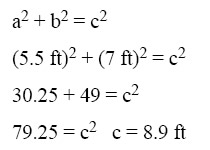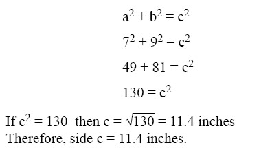 Example: What is the length of the longest side of a right triangle, given the other sides are 7 inches and 9 inches? The longest side of a right triangle is always side c, the hypotenuse. Use the Pythagorean Theorem to solve for the length of side c as follows: