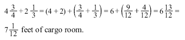 CHAPTER 1. Mathematics Mixed Numbers A mixed number is a combination of a whole number and a fraction. Addition of Mixed Numbers To add mixed numbers, add the whole numbers together. Then add the fractions together by finding a common denominator. The final step is to add the sum of the whole numbers to the sum of the fractions for the final result. Example: The cargo area behind the rear seat of a small airplane can handle solids that are 43/4 feet long. If the rear seats are removed, then 21/3 feet is added to the cargo area. What is the total length of the cargo area when the rear seats are removed?