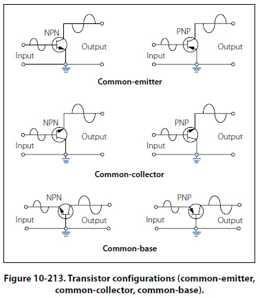 Common-Collector Configuration This transistor configuration is usually used for impedance matching. It is also used as a current driver due to its high current gain. It is also very useful in switching circuits since it has the ability to pass signals in either direction. [Figure 10-213]