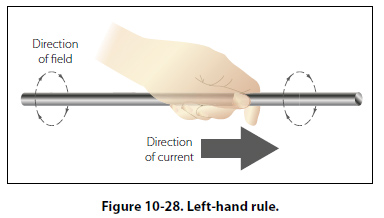 When a wire is bent into a loop and an electric current flows through it, the left-hand rule remains valid. [Figure 10-30]