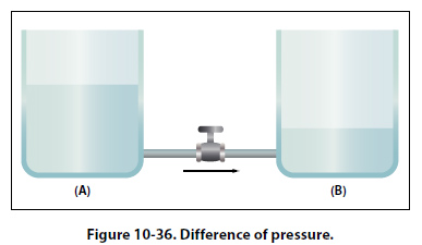 Conventional Flow and Electron Flow Today’s technician will find that there are two competing schools of thought and analytical practices regarding the flow of electricity. The two are called the conventional current theory and the electron theory. Conventional Flow Of the two, the conventional current theory was the first to be developed and, through many years of use, this method has become ingrained in electrical texts. The theory was initially advanced by Benjamin Franklin who reasoned that current flowed out of a positive source into a negative source or an area that lacked an abundance of charge. The notation assigned to the electric charges was positive (+) for the abundance of charge and negative (-) for a lack of charge. It then seemed natural to visualize the flow of current as being from the positive (+) to the negative (-). Electron Flow Later discoveries were made that proved that just the opposite is true. Electron flow is what actually happens where an abundance of electrons flow out of the negative (-) source to an area that lacks electrons or the positive (+) source. Both conventional flow and electron flow are used in industry. Many textbooks in current use employ both electron flow and conventional flow methods. From the practical standpoint of the technician, troubleshooting a system, it makes little to no difference which way current is flowing as long as it is used consistently in the analysis. Electromotive Force (Voltage) Unlike current, which is easy to visualize as a flow, voltage is a variable that is determined between two points. Often we refer to voltage as a value across two points. It is the electromotive force (emf) or the push or pressure felt in a conductor that ultimately moves the electrons in a flow. The symbol for emf is the capital letter “E." Across the terminals of the typical aircraft battery, voltage can be measured as the potential difference of 12 volts or 24 volts. That is to say that between the two terminal posts of the battery, there is an electromotive force of 12 or 24 volts available to push current through a circuit. Relatively free electrons in the negative terminal will move toward the excessive number of positive charges in the positive terminal. Recall from the discussion on static electricity that like charges repel each other but opposite charges attract each other. The net result is a flow or current through a conductor. There cannot be a flow in a conductor unless there is an applied voltage from a battery, generator, or ground power unit. The potential difference, or the voltage across any two points in an electrical system, can be determined by: Where E = E/Q Figure 10-36 illustrates the flow of electrons of electric current. Two interconnected water tanks demonstrate that when a difference of pressure exists between the two tanks, water will flow until the two tanks are equalized. The illustration shows the level of water in tank A to be at a higher level, reading 10 psi (higher potential energy) than the water level in tank B, reading 2 psi (lower potential energy). Between the two tanks, there is 8-psi potential difference. If the valve in the interconnecting line between the tanks is opened, water will flow from tank A into tank B until the level of water (potential energy) of both tanks is equalized.
