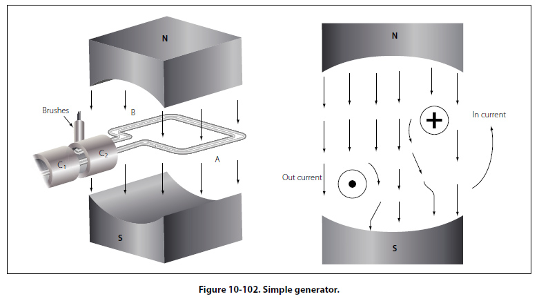 and B, and the left-hand rule for generators is applied,