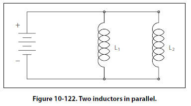 LT = L1 + L2 + L3 + … LN Inductors in Parallel When two inductors are connected in parallel as shown in Figure 10-122, each must have the same potential difference between the terminals. When inductors are connected in parallel, the total inductance is less than