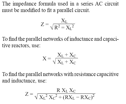 Since the inductive reactance causes the current through the coil to lag the voltage by 90°, and the capacitive reactance causes the current through the capacitor to lead the voltage by 90°, the two currents are 180° out of phase. The canceling effect of such currents would mean that no current would flow from the generator and the parallel combination of the inductor, and the capacitor would appear as infinite impedance. In practice, no such circuit is possible, since some value of resistance is always present, and the parallel circuit, sometimes called a tank circuit, acts as very high impedance. It is also called an antiresonant circuit, since its effect in a circuit is opposite to that of a series resonant circuit, in which the impedance is very low. |