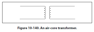 The ratio of the transformer input voltage to the output voltage is the same as the turns ratio if the transformer is 100 percent efficient. Thus, when 10 volts are applied to the primary of the transformer shown in Figure 10- 137A, two volts are induced in the secondary. If 10 volts are applied to the primary of the transformer in Figure 10-137B, the output voltage across the terminals of the secondary will be 40 volts. No transformer can be constructed that is 100 percent efficient, although iron core transformers can approach this figure. This is because all the magnetic lines of force set up in the primary do not cut across the turns of the secondary coil. A certain amount of the magnetic flux, called leakage flux, leaks out of the magnetic circuit. The measure of how well the flux of the primary is coupled into the secondary is called the “coefficient of coupling." For example, if it is assumed that the primary of a transformer develops 10,000 lines of force and only 9,000 cut across the secondary, the coefficient of coupling would be 0.9 or, stated another way, the transformer would be 90 percent efficient. When an AC voltage is connected across the primary terminals of a transformer, an alternating current will flow and self induce a voltage in the primary coil that is opposite and nearly equal to the applied voltage. The difference between these two voltages allows just enough current in the primary to magnetize its core. This is called the exciting, or magnetizing, current. The magnetic field caused by this exciting current cuts across the secondary coil and induces a voltage by mutual induction. If a load is connected across the secondary coil, the load current flowing through the secondary coil will produce a magnetic field which will tend to neutralize the magnetic field produced by the primary current. This will reduce the self-induced (opposition) voltage in the primary coil and allow more primary current to flow. The primary current increases as the secondary load current increases, and decreases as the secondary load current decreases. When the secondary load is removed, the primary current is again reduced to the small exciting current sufficient only to magnetize the iron core of the transformer. If a transformer steps up the voltage, it will step down the current by the same ratio. This should be evident if the power formula is considered, for the power (I × E) of the output (secondary) electrical energy is the same as the input (primary) power minus that energy loss in the transforming process. Thus, if 10 volts and 4 amps (40 watts of power) are used in the primary to produce a magnetic field, there will be 40 watts of power developed in the secondary (disregarding any loss). If the transformer has a step-up ratio of 4 to 1, the voltage across the secondary will be 40 volts and the current will be 1 amp. The voltage is 4 times greater and the current is one-fourth the primary circuit value, but the power (I × E value) is the same. When the turns ratio and the input voltage are known, the output voltage can be determined as follows: E2/E1 = N2/N1 Where E is the voltage of the primary, E2 is the output voltage of the secondary, and N1 and N2 are the number of turns of the primary and secondary, respectively. Transposing the equation to find the output voltage gives: E2 = E1N2/N1