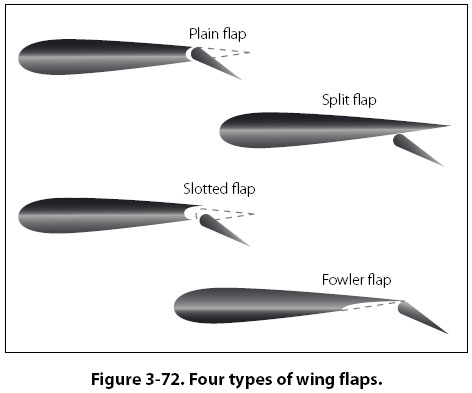 Supplemental Lift-Modifying Devices If the wing of an airplane was designed to produce the maximum lift possible at low airspeed, to accommodate takeoffs and landings, it would not be suited for higher speed flight because of the enormous amount of drag it would produce. To give the wing the ability to produce maximum low speed lift without being drag prohibitive, retractable high lift devices, such as flaps and slats, are utilized. Flaps The most often used lift-modifying device, for small airplanes and large, is the wing flap. Flaps can be installed on the leading edge or trailing edge, with the leading edge versions used only on larger airplanes. Flaps change the camber of the wing, and they increase both the lift and the drag for any given angle of attack. The four different types of flaps in use are the plain, split, slotted, and Fowler. [Figure 3-72]