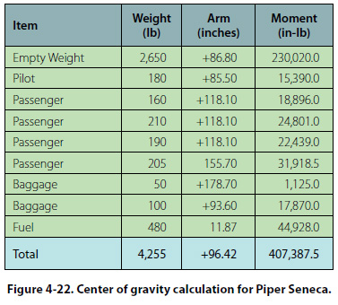 To calculate the loaded weight and CG of this airplane, a four column chart will be used, as shown in Figure 4-22.
