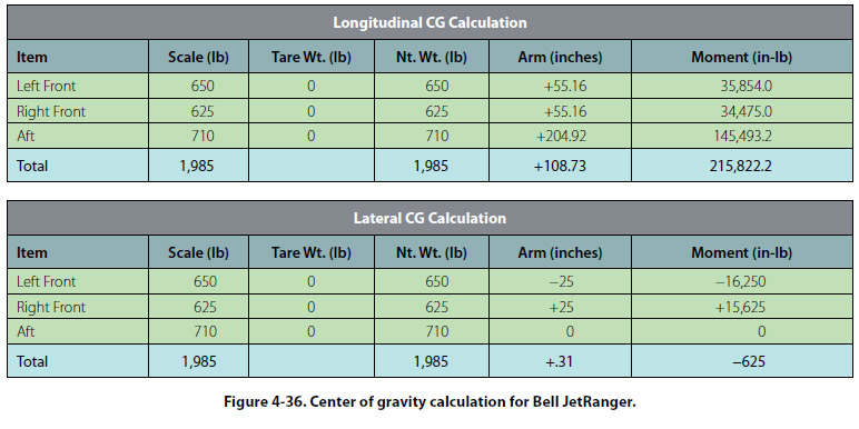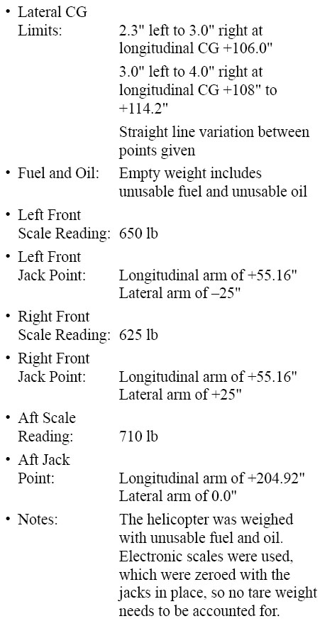 As an example of weighing a helicopter, consider the Bell JetRanger in Figure 4-35, and the following specifications and weighing data.