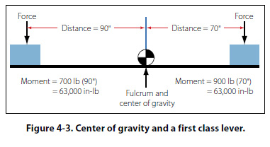 Figure 4-3 shows a first class lever with the pivot point (fulcrum) located at the center of gravity for the lever. Even though the weights on either side of the fulcrum are not equal, and the distances from each weight to the fulcrum are not equal, the product of the weights and arms (moments) are equal, and that is what produces a balanced condition. Maximum Weight The maximum weight is the maximum authorized weight of the aircraft and its contents, and is indicated in the Aircraft Specifications or Type Certificate Data Sheet. For many aircraft, there are variations to the maximum allowable weight, depending on the purpose and conditions under which the aircraft is to be flown. For example, a certain aircraft may be allowed a maximum gross weight of 2,750 lb when flown in the normal category, but when flown in the utility category, which allows for limited aerobatics, the same aircraft’s maximum allowable gross weight might only be 2,175 lb. There are other variations when dealing with the concept of maximum weight, as follows: