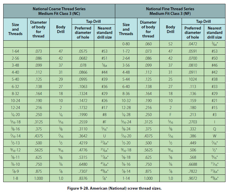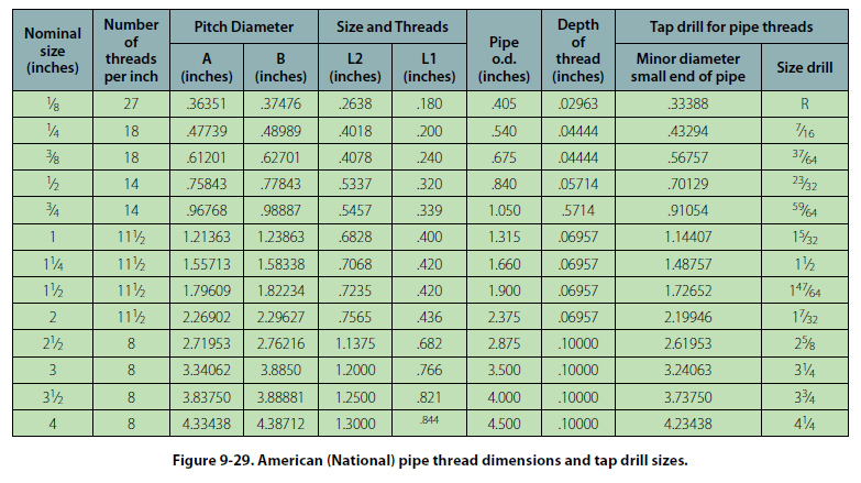 Information on thread sizes, fits, types, and so forth, is shown in Figures 9-28, 9-29, and 9-30.
