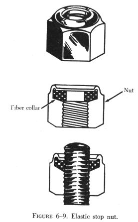 The Boots selflocking nut is of one piece, all metal construction, designed to hold tight in spite of severe vibration. Note in figure 6-7 that it has two sections and is essentially two nuts in one, a locking nut and a load carrying nut. The two sections are connected with a spring which is an integral part of the nut.