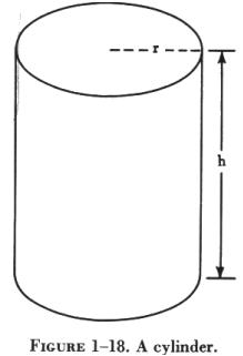 A solid having the shape of a can, length of pipe, or other such object is called a cylinder. The ends of a cylinder are identical circles as shown in figure 1-18. |