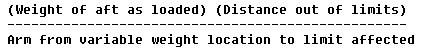 Each alternative listed will require a placard stating the loading arrangement by which the gross weight and CG will be retained within their designated limits. Compute a new CG position for each alternate loading arrangement. |