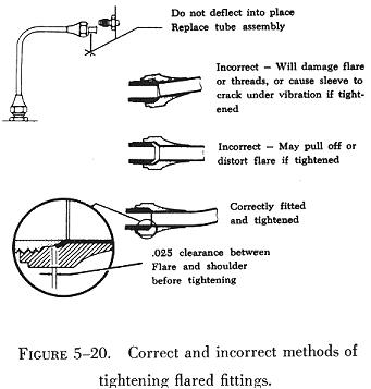 Some manufacturers service instructions will specify wrench torque values for flareless tubing installations (e.g., see figure 5-22). |