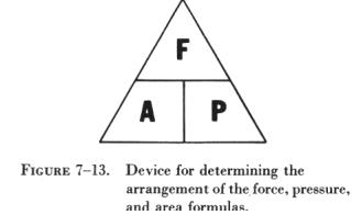 Figure 7-13 illustrates a device for recalling these formulas. Any letter in the triangle may be expressed as the product or quotient of the other two, depending upon its position within the triangle.