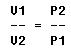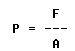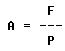 Since area equals force divided by pressure, the formula is written: