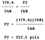 This equation means that with a constant volume, the absolute pressure of a gas varies directly with the absolute temperature. Examples of Charles' law: A cylinder of gas under a pressure of 1,800 psig at 70° F is left out in the sun in the tropics and heats up to a temperature of 130° F. What is the new pressure within the cylinder? The pressure and temperature must be converted to absolute pressure and temperature. Formula or equation: