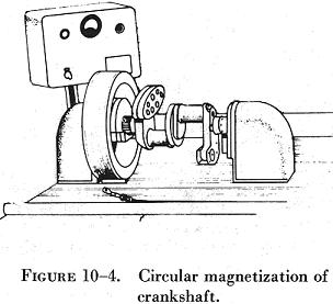 In rapidly rotating, reciprocating, vibrating, and other highly stressed aircraft parts, small defects often develop to the point that they cause complete failure of the part. Magnetic particle inspection has proved extremely reliable for the rapid detection of such defects located on or near the surface. In using this method of inspection, the location of the defect is indicated and the approximate size and shape are outlined.
