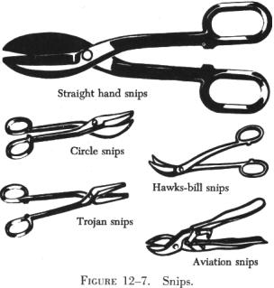 use (figure 12-7). Straight snips are used for cutting straight lines when