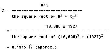 a 10,000 ohm resistance in parallel. What is the value of the impedance