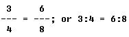 This is read 3 is to 4 as 6 is to 8. The first and last terms of the proportion are called the extremes. The second and third terms are called the means.