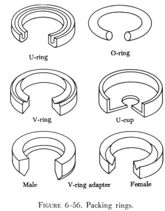 as actuating cylinders, pumps, selector valves, etc. Packings are made