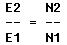 Where E is the voltage of the primary, E2 is the output voltage of the