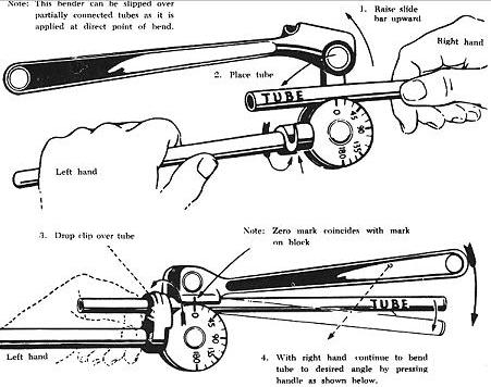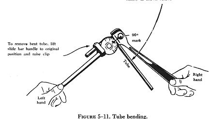 Tube bending machines for all types of tubing are generally used in repair stations and large maintenance shops. With such equipment, proper bends can be made on large diameter tubing and on tubing made from hard material. The production tube bender is an example of this type of machine.