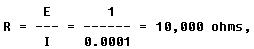 For example, assume that the basic meter (microammeter) is to be made into a voltmeter with a full scale reading of 1 volt. The coil resistance of the basic meter is 100 ohms, and 0.0001 ampere (100 microamperes) causes a full scale deflection. The total resistance, R, of the meter coil and the series resistance is