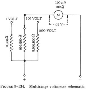 | Multirange voltmeters utilize one meter movement with the