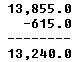 The minus moment of -615.0 is subtracted from the sum of the plus moments:
