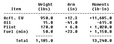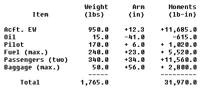Pilot -- 170 lbs @ +6 in = (170.0 lbs) (+6 in).