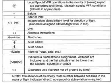 a climb/descend and maintain arrow, an at or above/below symbol, a cruise
