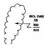 Tropical Storms - the symbol to the left depicts tropical storms. Areas of associated cumulonimbus activity, if meeting the previously given criteria (ISOL EMBD CB, OCNL EMBD CB, ISOL CB IN HAZE, OCNL CB IN HAZE, FRQ CB), are enclosed by scalloped lines and labeled with the vertical extent. |