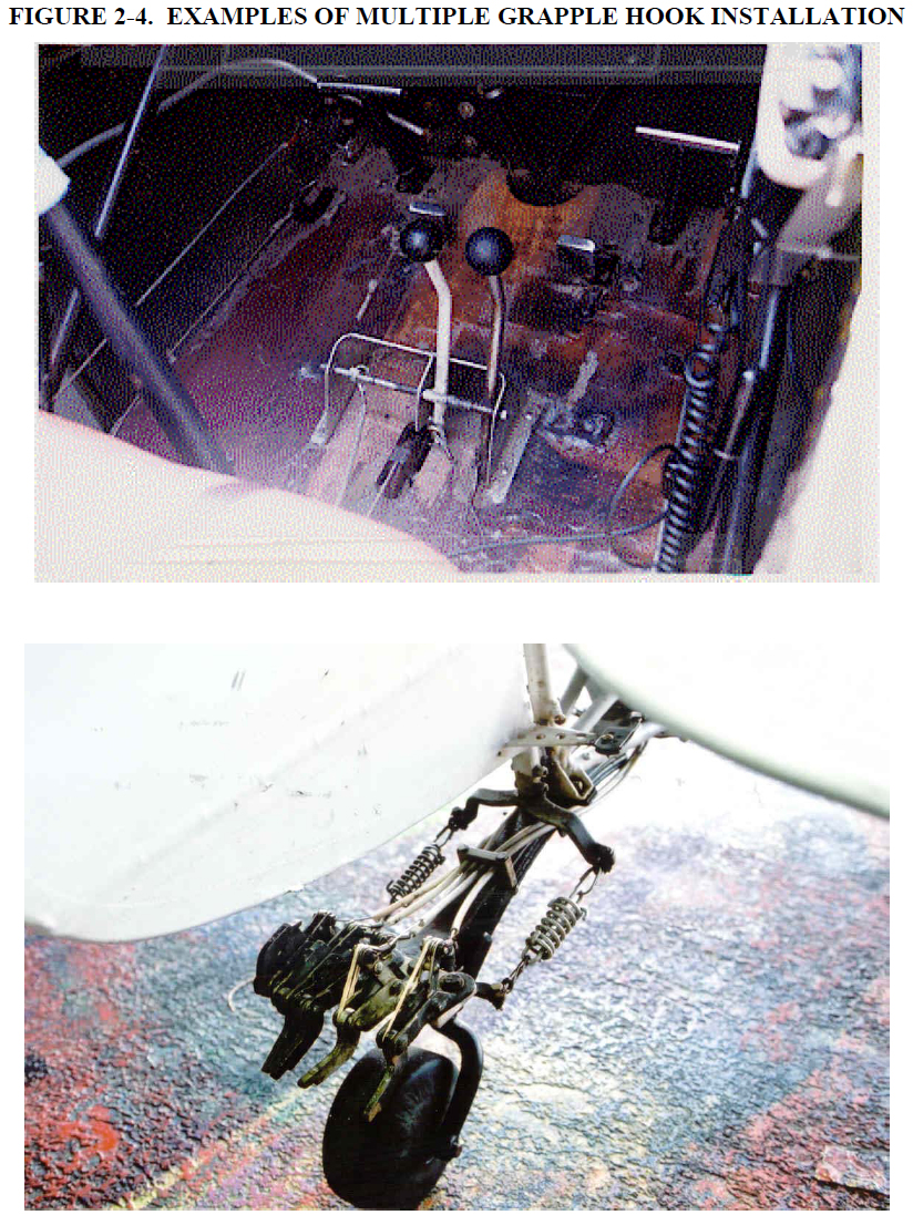CHAPTER 2. EQUIPMENT AND OPERATION SAFETY ISSUES BANNER PICKUP. The banner pickup is the most critical portion of a banner tow operation. A typical flight begins by taking off with the grapple hook assembly stowed. Upon reaching a safe altitude, the pilot will deploy the grapple hook and allow it to trail aft of the aircraft. See Figure 2-3, Examples of Typical Towrope Configuration, Stowed for Deployment. ![]() A shallow approach is conducted perpendicular to the pickup-masts in an effort to snag the towline loop with the grapple hook. As the masts are reached, the airplane is rotated into a steep climb to assure the banner will be peeled off the ground instead of jerked off at an acute angle, depending upon aircraft performance capabilities. As the banner is peeled off the ground, back pressure is gradually reduced until the airplane is climbing at a normal angle with the banner in tow. The approach to the pickup-masts should be flown appropriate to the performance characteristics of the aircraft. Care must be taken to avoid snagging the towline with the airframe. An approach that is both too low and too slow may result in the grapple hook bouncing off the ground. The length ofthe grapple hook and line assembly should be limited to a length that will not allow the hook to strike the cockpit area of the airplane if it should come up over the fuselage. Grapples contacting a hard surface have been known to bounce upward and forward, over the airplane, snarling the horizontal stabilizer or a wing. Stalls during the banner pickup procedure constitute one of the more frequent causes of banner tow operational accidents. A stall occurs when an airfoil reaches a critical angle of attack and is a function of wing loading, independent of airspeed. In fact, an excessively abrupt rotation of an airplane during a pickup, or a snap or steep turn after a missed pickup, may be sufficient to precipitate an accelerated stall. NOTE: The formula for stall is the square root of the load factor times the normal stall speed. Gradually reducing back pressure while in the climb as the banner is picked up increases the margin from the stall threshold by decreasing the wing loading and consequently the angle of attack. FLYING WITH A BANNER IN TOW. The accidental release of a banner in flight may not be hazardous to the tow plane or crew but it may pose a threat to people and property on the surface. Banner towlines should be examined carefully for flaws before each towing day. Grapple hooks should also be examined for cleanliness and smoothness. Any surface irregularities on a hook can act as an abrasive and degrade the towline loop during the pickup as the line moves laterally over the hook while tension on the line is increased. Whenever possible, banner material and lines should be of non-conductive material. This reduces the risk of shorting out power lines in the case where a banner is released over power lines by accident. LANDING WITH BANNER IN TOW. Should a malfunction make it impossible to release the banner, it is generally uneventful if a hard surface runway is used. However, a special technique can be used if the landing is attempted on a sod or dirt runway. If the masthead and banner lay down on the sod runway, each blade of grass folds over the mast and each individual letter pole on lettered banners causes drag. The pilot needs to be aware that the masthead may dig into the soft turf like an anchor, stretching the tow line, and sometimes breaking it. If the tow line breaks, the sudden release of energy will cause the airplane to pitch down and a nose over condition may occur. This condition can be countered by maintaining back pressure on the flight controls and adding full power once the drag caused by the masthead is experienced. After the airplane is again stabilized, the power is reduced. MULTIPLE TOW HITCHES. When multiple tow hitches are used, an airplane may tow a succession of banners without having to land and reinstall a grapple line after every drop. A bank of as many as four or five tow hitches may be installed on the aircraft and a grapple line is affixed to each. These lines are stowed within reach of the pilot in the same manner as previously discussed. Care must be taken to prevent multiple lines from tangling, and since the pilot will be confronted by a multitude of grapples and hitch releases, each line and release should be positively matched to prevent confusion in the event of an emergency. The length of flights and fuel consumption should be considered in determining how many hooks will be added to a multiple tow hitch. See Figure 2-4, Examples of Multiple Grapple Hook Installation. ![]() |