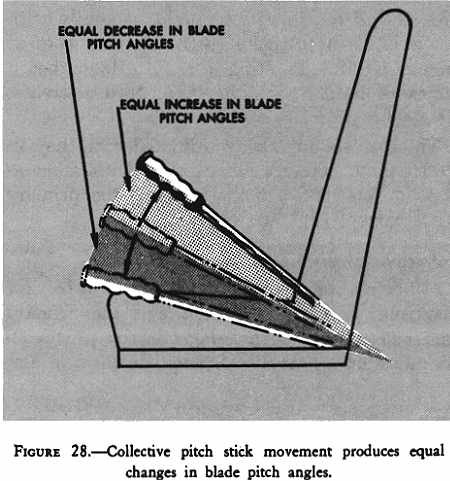 Figure 28 - Collective pitch stick movement produces equal changes in blade pitch angles.