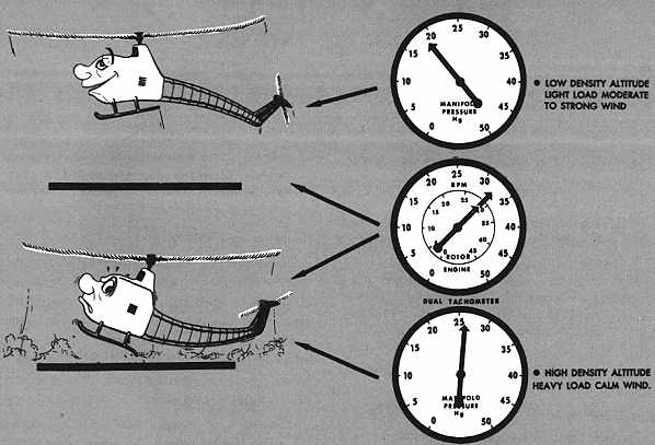 2. The most adverse conditions for helicopter performance are the combination of a high-density altitude, heavy gross weight, and calm or no wind (fig. 64).