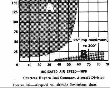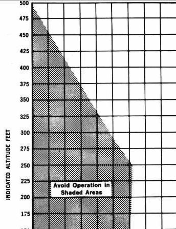 A helicopter pilot must become familiar with this chart for the particular helicopter being flown. From it, the determination as to what altitudes and airspeeds are required to safely make an autorotative landing in case of an engine failure; or, to restate it in another way, the chart can be used to determine those altitude-airspeed combinations from which it would be nearly impossible to successfully complete an autorotative landing. The altitude-airspeed combinations that should be avoided are represented by the shaded areas of the chart.