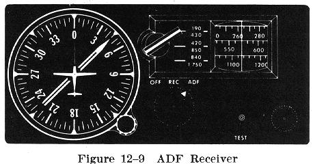 Many airplanes are equipped with ADF (Automatic Direction Finder) radios which operate in the low and medium frequency bands (Fig. 12-9). By tuning to low frequency (LF) radio stations such as nondirectional radiobeacons (NDB), or to commercial broadcast (AM) stations, a pilot may use ADF for navigation in cross-country flying. NDB frequency and identification information may be obtained from aeronautical charts and the Airport/Facility Directory. Some major commercial broadcast station locations and frequencies are shown on sectional aeronautical charts. Positive station identification is essential when navigating with the ADF. The Morse codes are used to identify the NDB stations while the commercial broadcast stations are identified at random times by the station's announcer.
