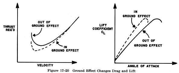 The reduction in induced flow due to ground effect causes a significant reduction in induced drag but causes no direct effect on parasite drag. As a result of the reduction in induced drag, the thrust required at low speeds will be reduced.