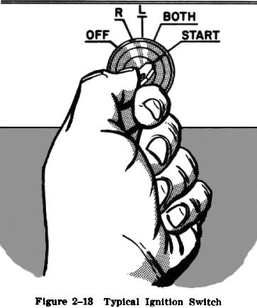 Modern airplane engines are required by Federal Aviation Regulations to have a dual ignition system - that is, two separate magnetos to supply the electric current to the two spark plugs contained in each cylinder. One magneto system supplies the current to one set of plugs; the second magneto system supplies the current to the other set of plugs. For that reason the ignition switch |