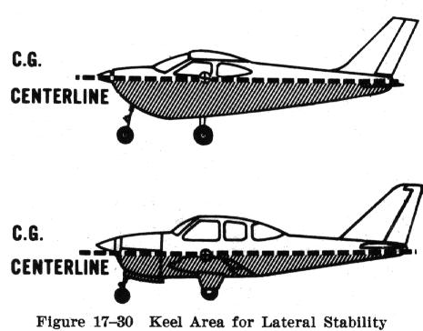 portion of the keel area (both acting about the CG) tends to roll the airplane
