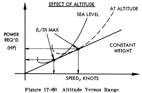 The effect of altitude on specific range also can be appreciated from the previous relationships. If a change in altitude causes identical changes in speed and power required, the proportion of speed to power required would be unchanged. The fact implies that the specific range of the propeller driven airplane would be unaffected by altitude. Actually, this is true to the extent |