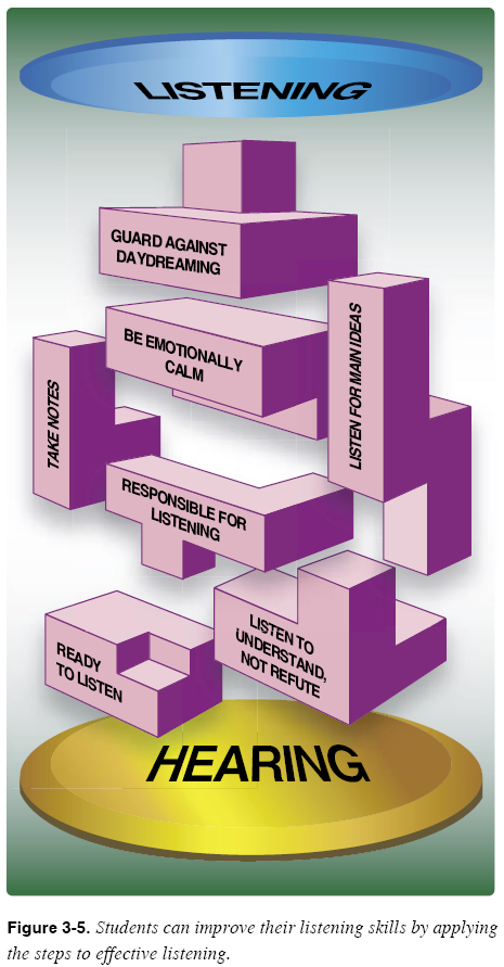 Just as it is important for instructors to want to listen in order to be effective listeners, it is necessary for students to want to listen. Wanting to listen is just one of several techniques that allow a student to listen effectively. Instructors can improve the percentage of information transfer by teaching students how to listen. [Figure 3-5]